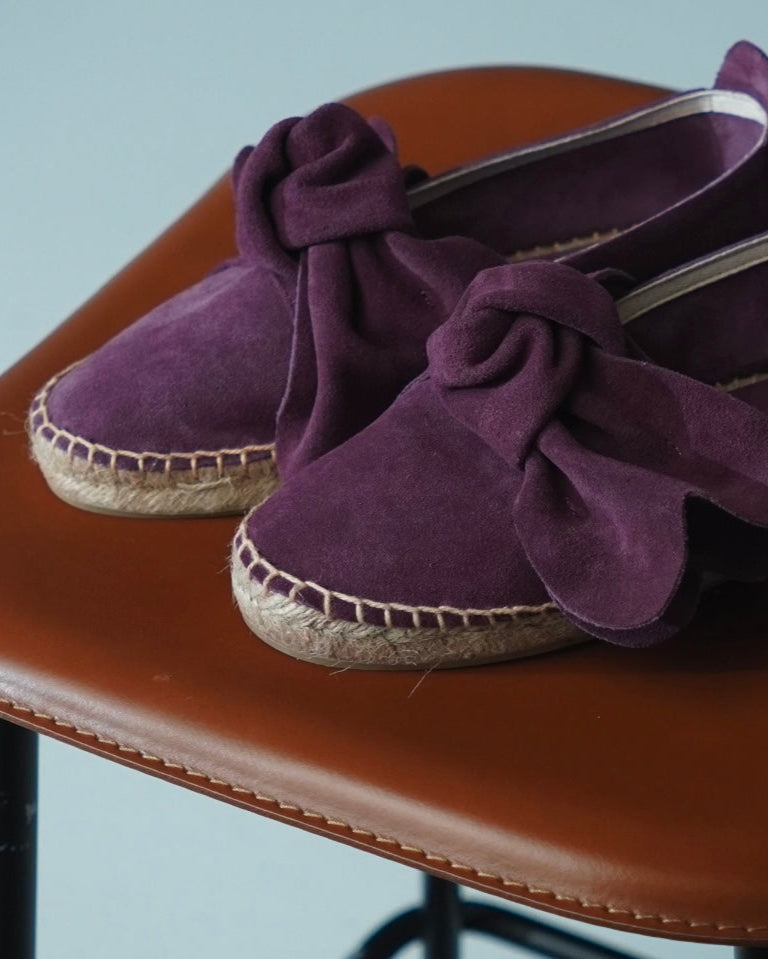 Handcrafted suede espadrilles featuring our signature oversized bow.