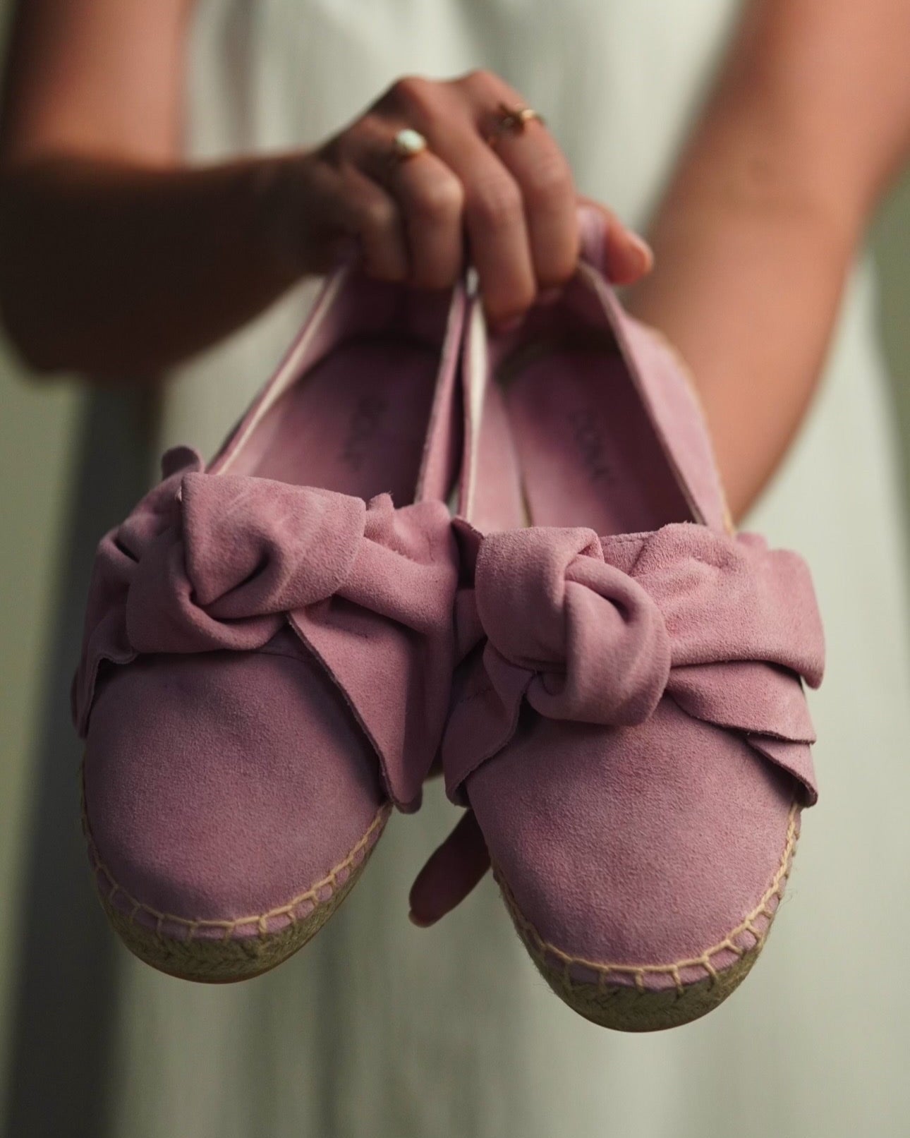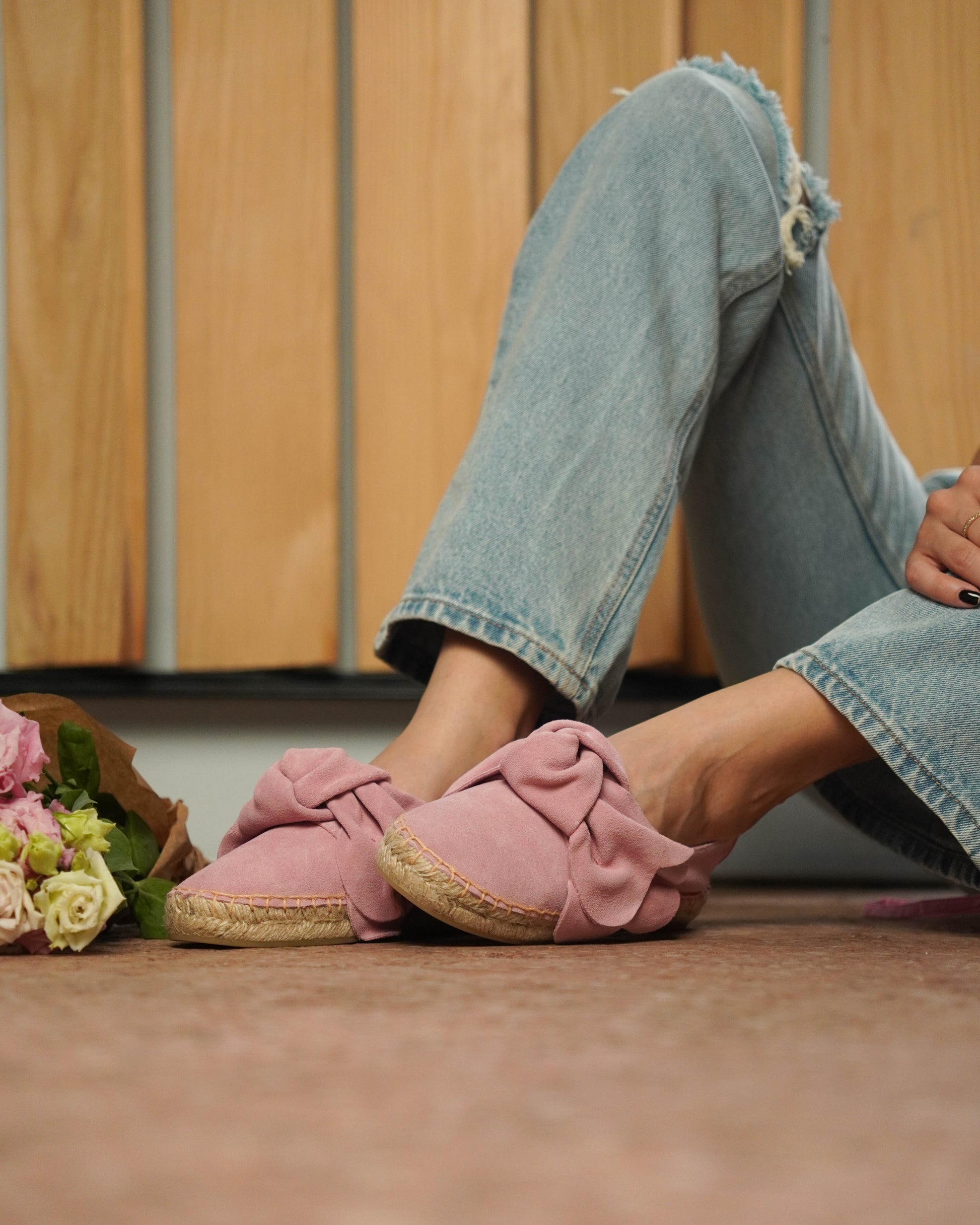 Handcrafted suede espadrilles featuring our signature oversized bow.